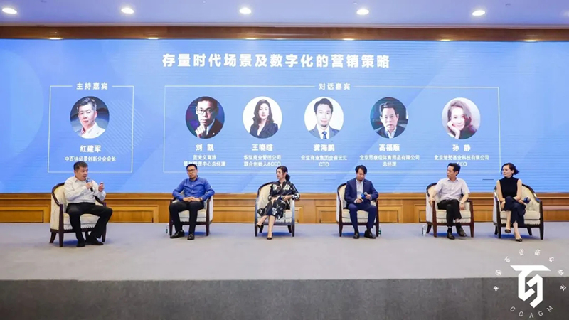 中百協(xié)場景創(chuàng)新分會(huì)會(huì)長紅建軍主持對(duì)話,對(duì)話題目為“存量時(shí)代場景及數(shù)字化的營銷策略”,藍(lán)光文商旅策劃管理中心總經(jīng)理劉凱 、華泓商業(yè)管理公司聯(lián)合創(chuàng)始人&CEO王曉暄、合生商業(yè)集團(tuán)合商云匯CTO龔海鵬、北京思康瑞體育用品有限公司總經(jīng)理高福順、北京楚梵基業(yè)科技有限公司CEO孫靜作為嘉賓參加分享。
