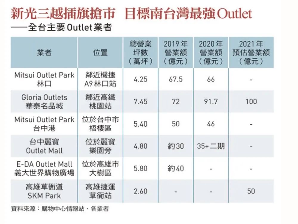 臺(tái)灣主要奧萊營(yíng)業(yè)額統(tǒng)計(jì)(2019-2021)