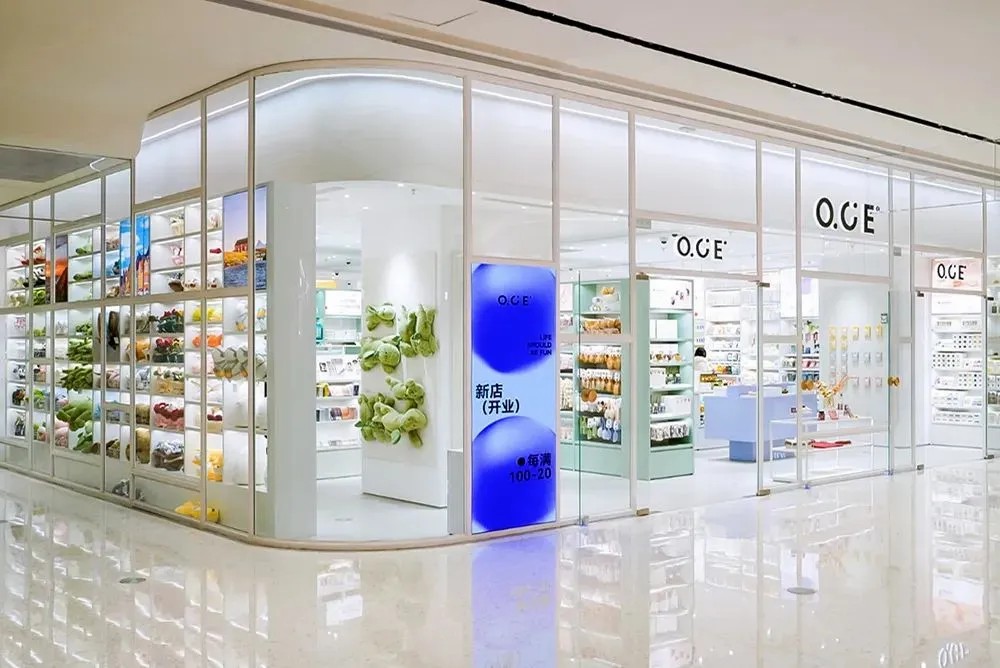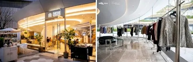 二者通過中間的三個(gè)異形玻璃盒子串聯(lián),分別進(jìn)駐了Snow Peak(西南首家購物中心店)、ROARINGWILD成都首家限時(shí)概念店、中式茶飲品牌“白福福”,十分吸睛。