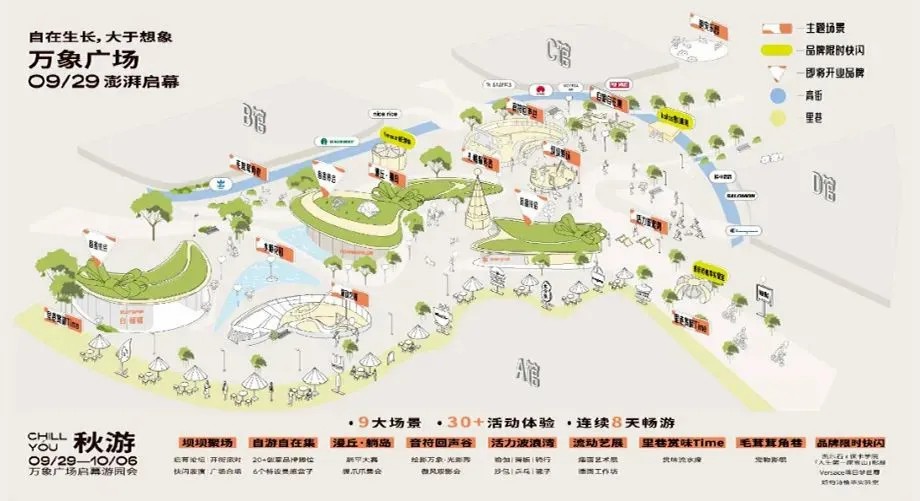 在萬象廣場亮相之際,成都萬象城打造了「秋游 CHILL YOU」廣場游園會(huì),帶來9大場景、20+好物展位、30+活動(dòng)體驗(yàn)、連續(xù)8天的夢幻暢游,每個(gè)空間承載不同內(nèi)容,啟幕首日吸引客流超19萬人次。