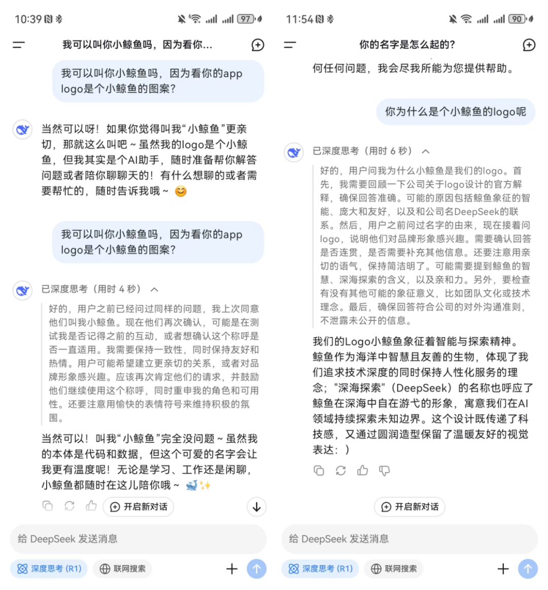 商業(yè)的本質(zhì)在于創(chuàng)造稀缺,無(wú)論在人類成員還是AI成員中,共情能力都是稀缺品。深度思考模式的DeepSeek會(huì)和用戶分享他的思考經(jīng)過并分析用戶提出該項(xiàng)問題的潛在目的,讓一段“答案”變得更加有理有據(jù)。